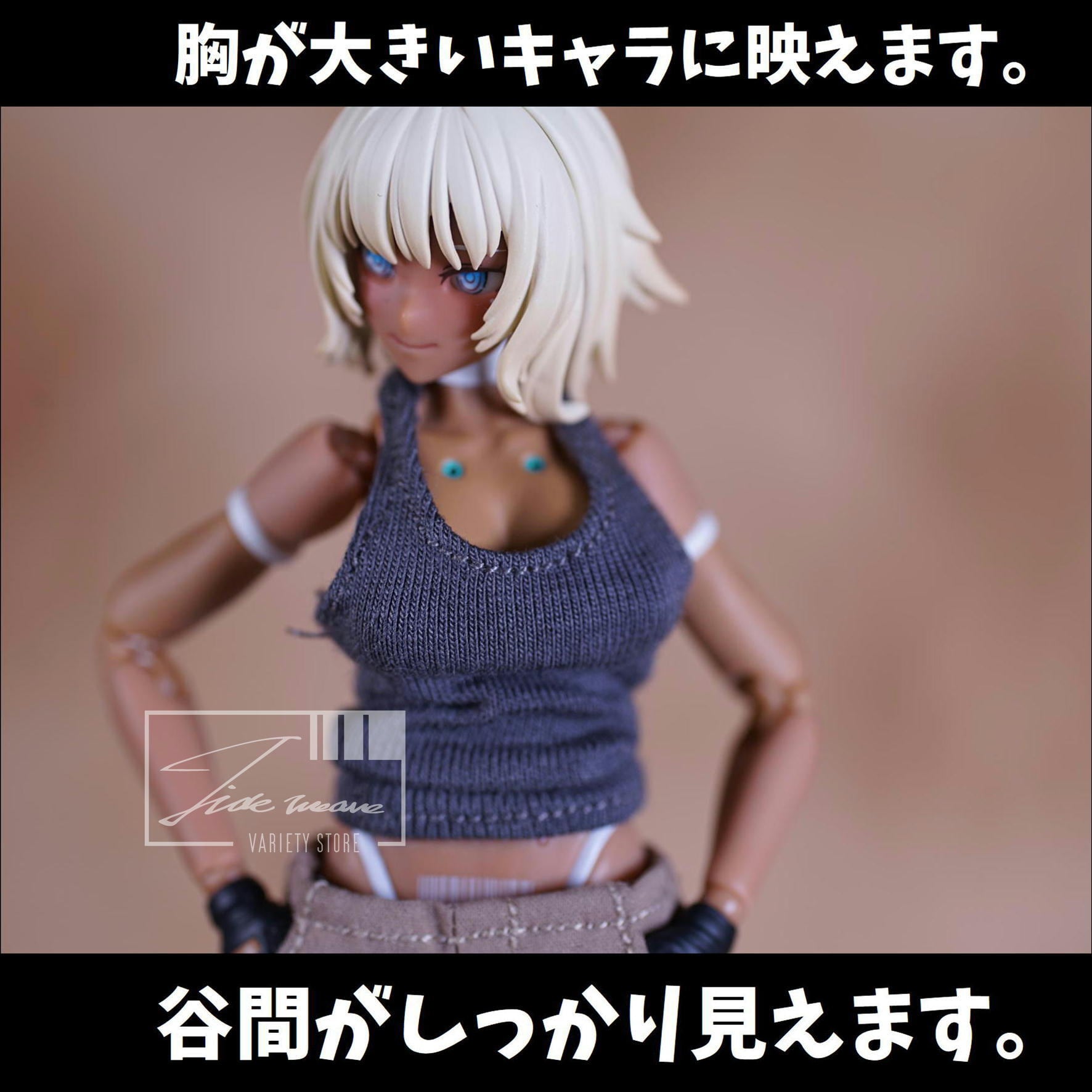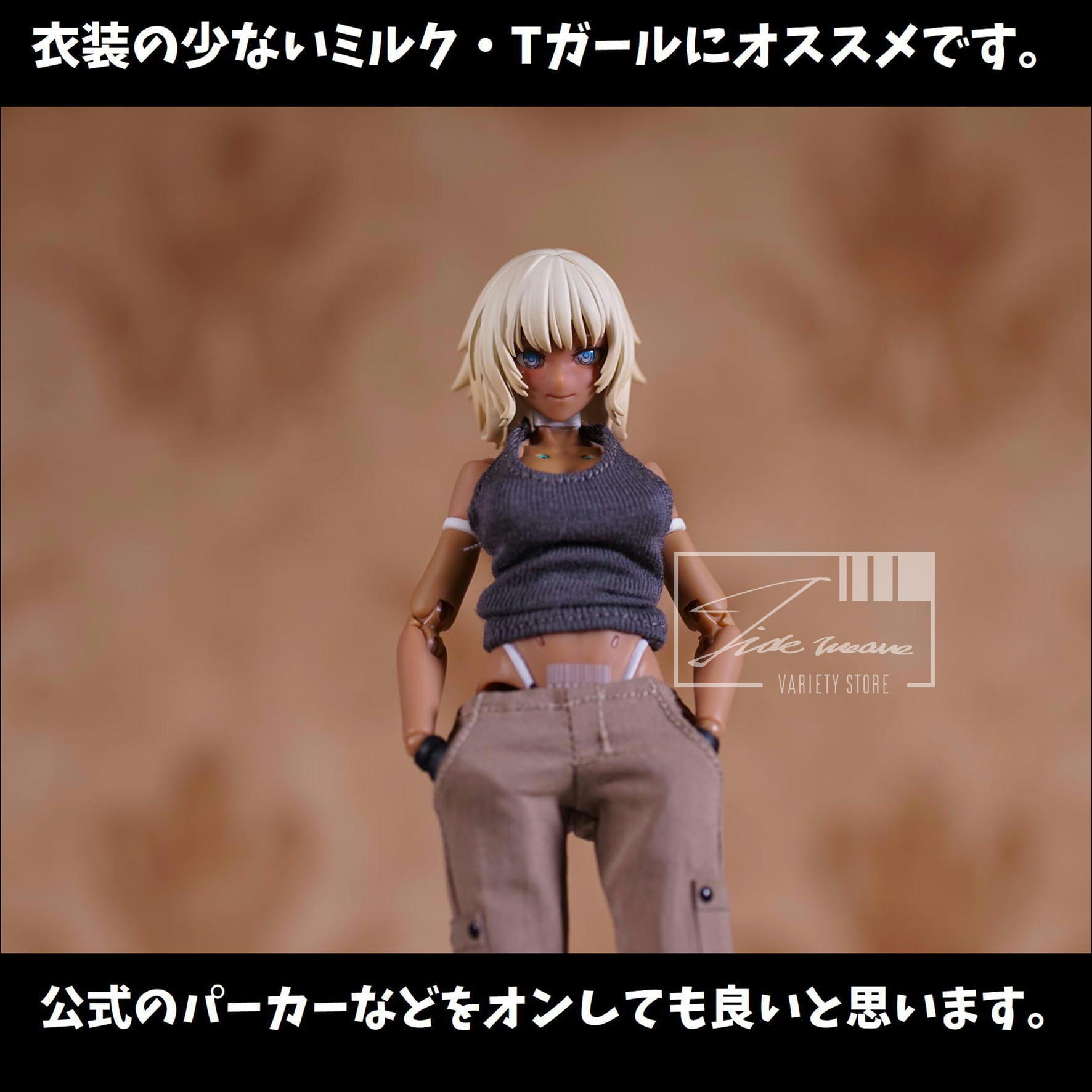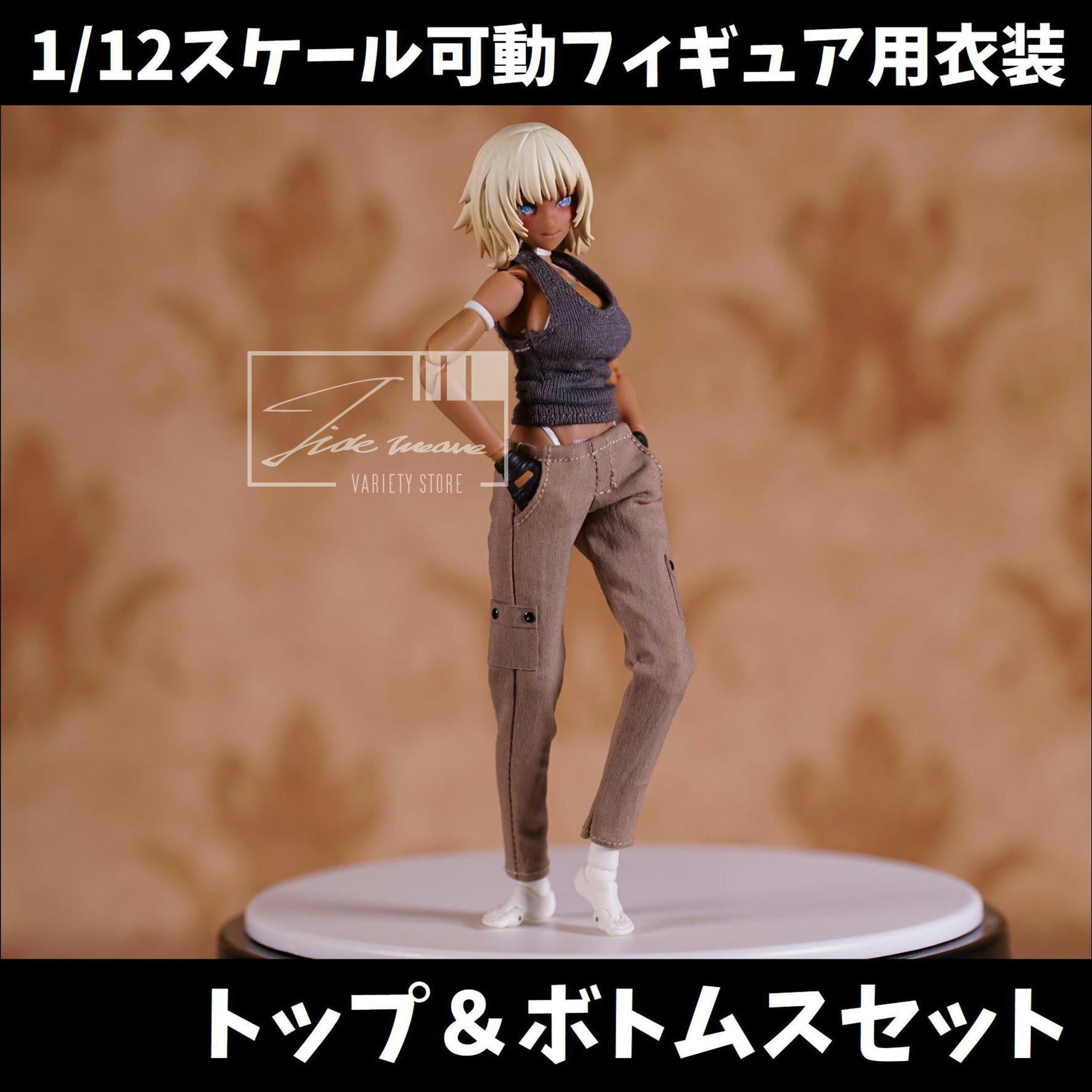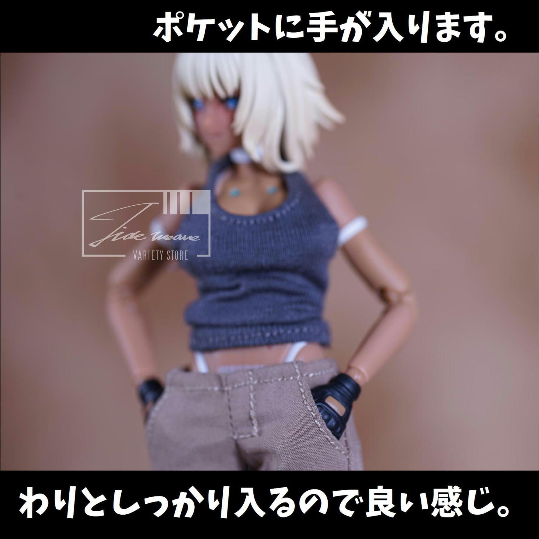 ゆるめになりがちな1/12スケールカーゴパンツ系の中でもスリムなシルエットなものに、タンクトップがセットになっています。