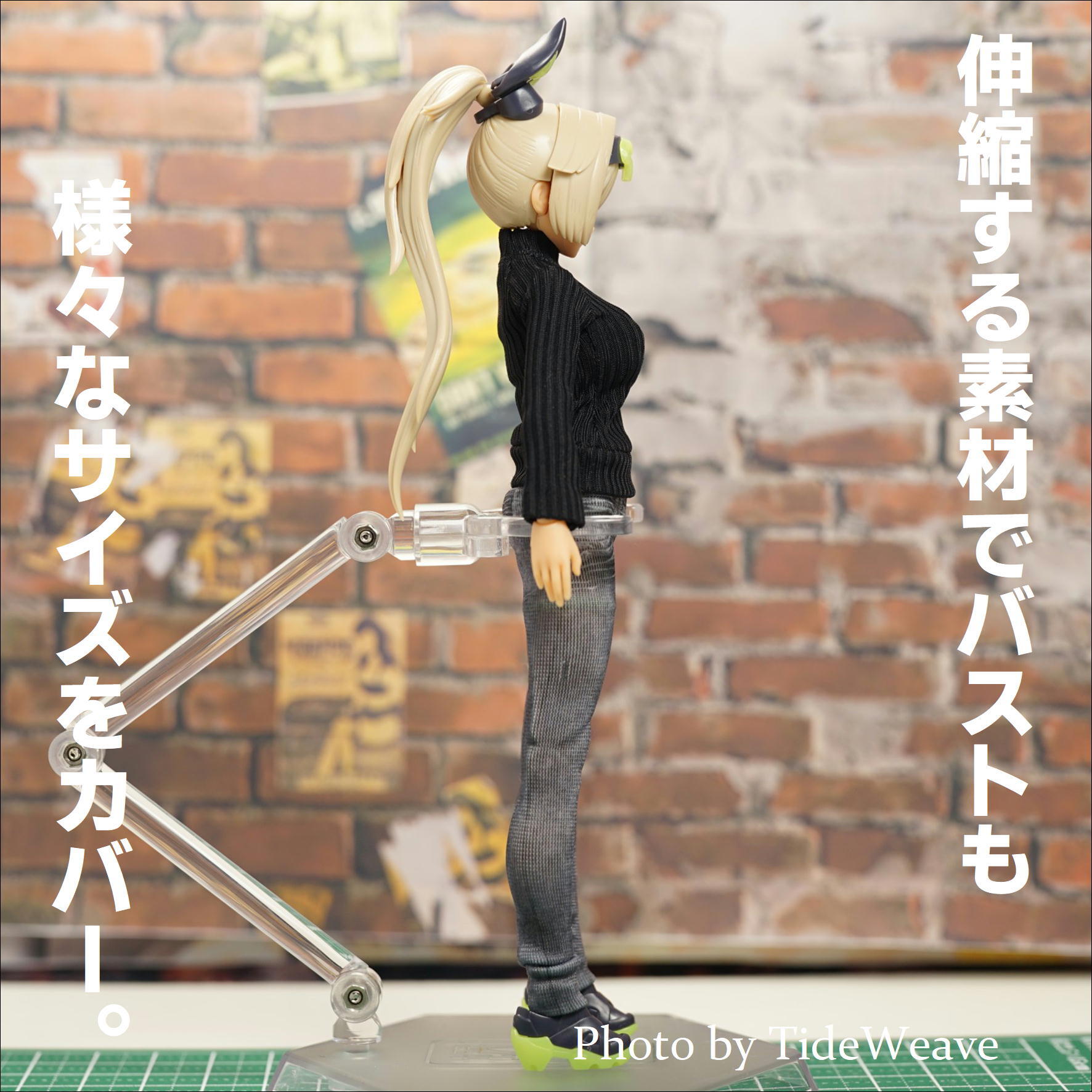 リブ織りの素材がディティール感豊富で身体のラインを美しく表現します。