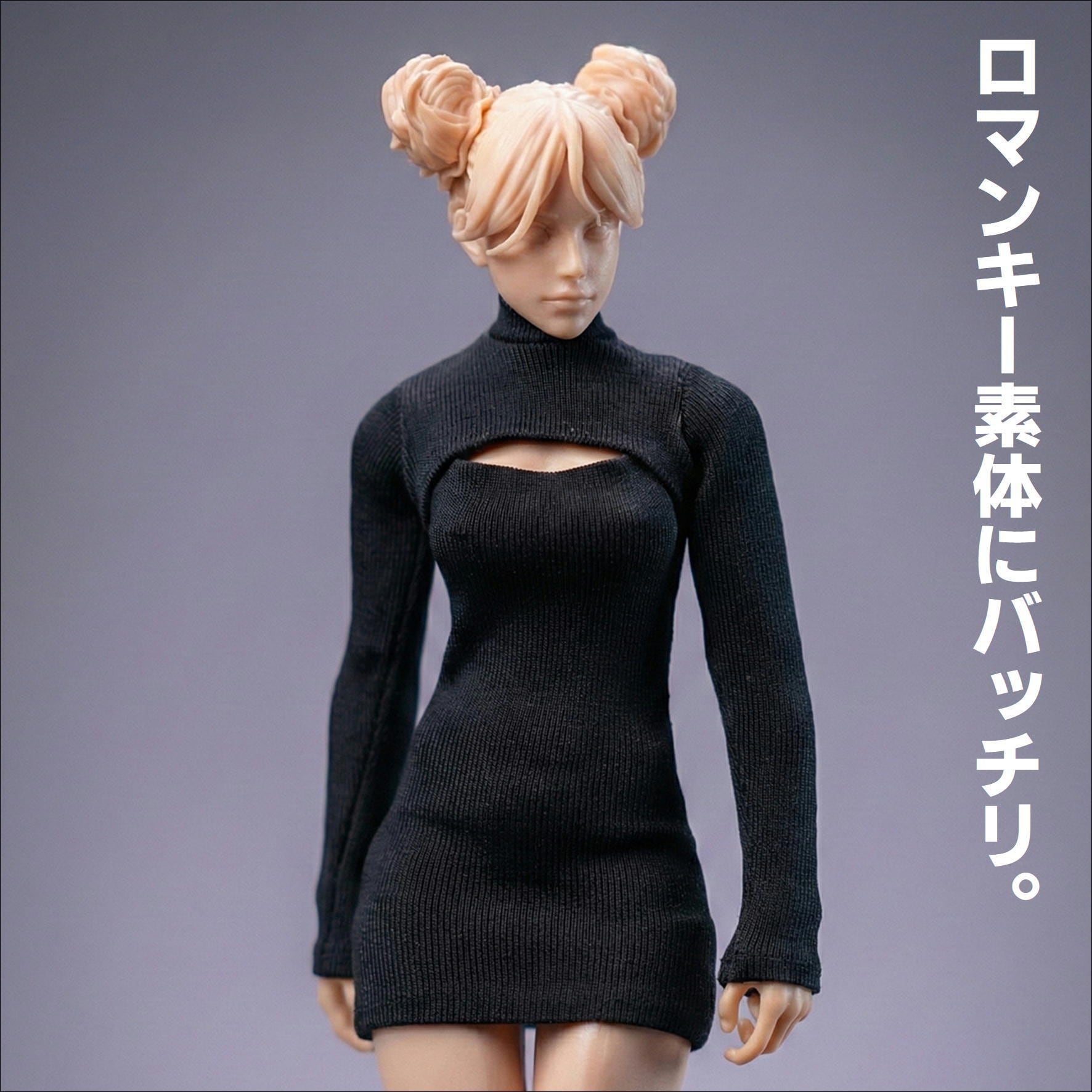 胸元開きタイトワンピ ブラック 1/12スケール アウトフィット ドール服 蝸之殻 30MS メガミデバイス フィギュア