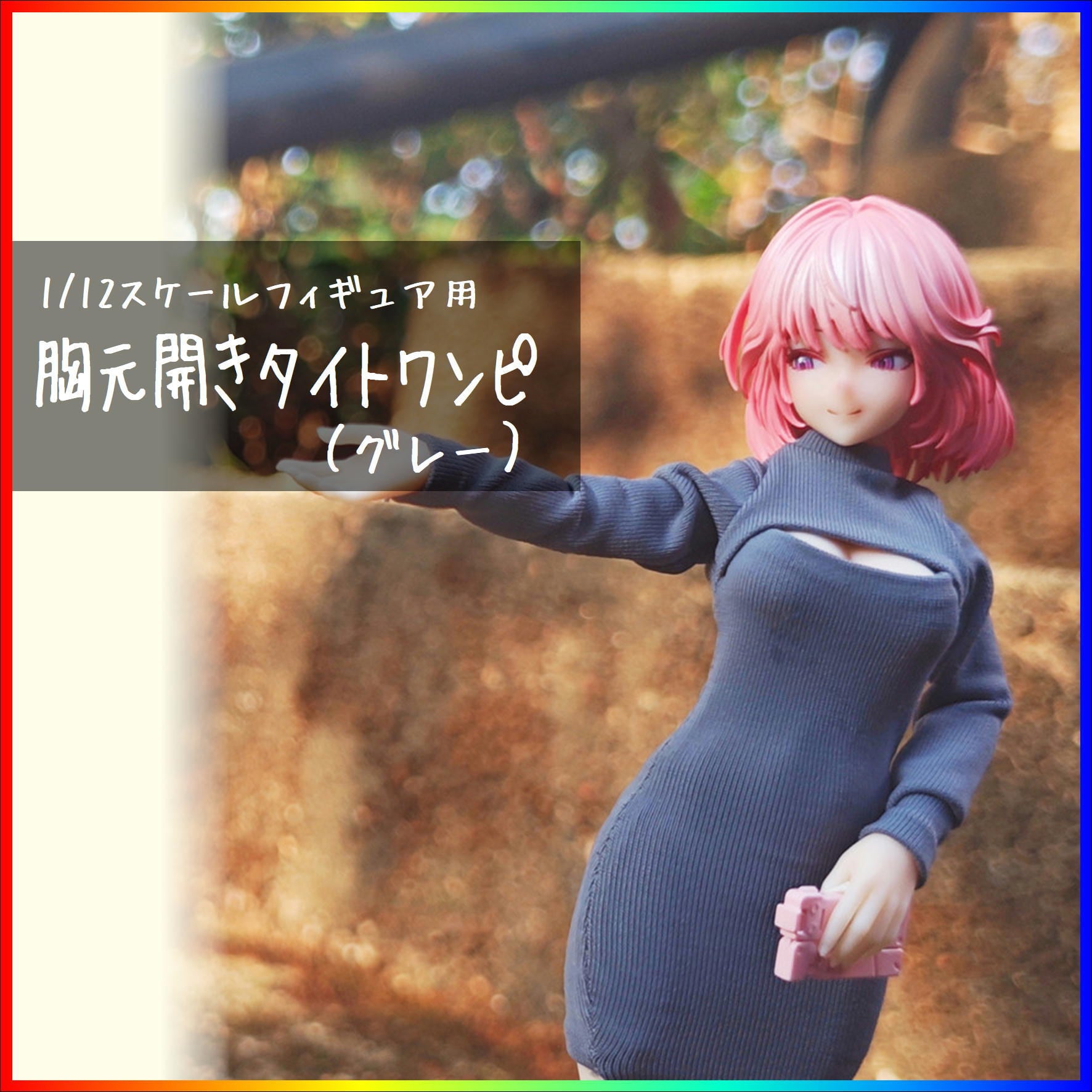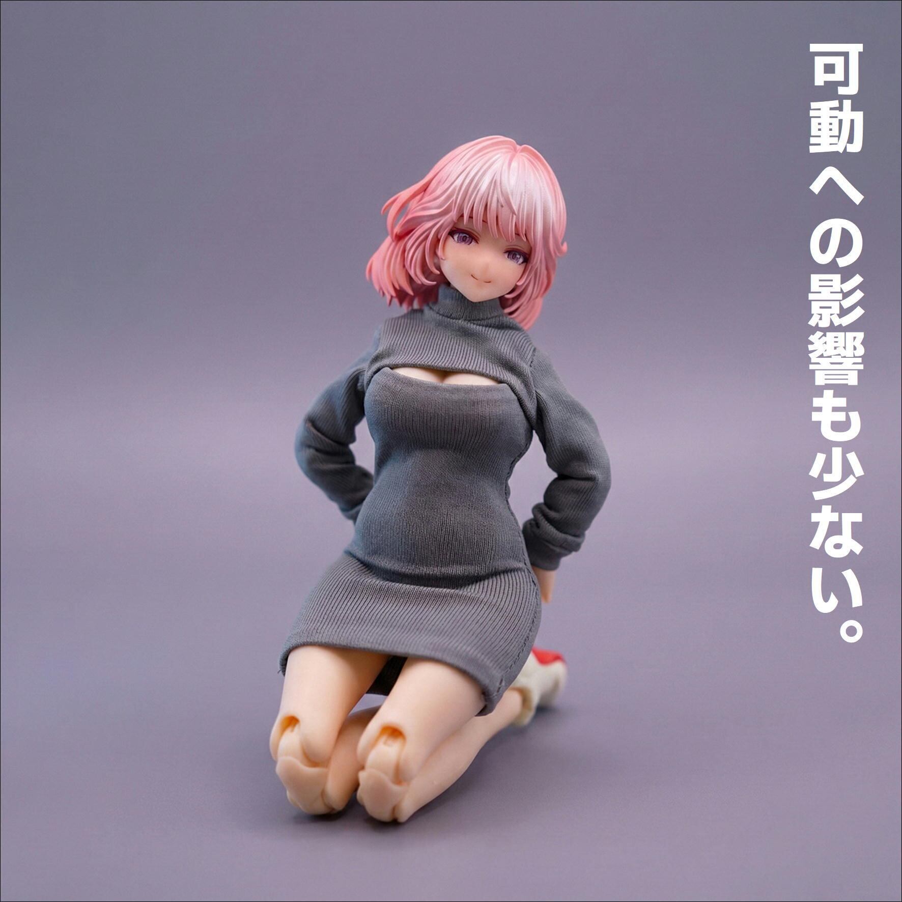 胸元開きタイトワンピ グレー 1/12スケール アウトフィット ドール服 蝸之殻 30MS メガミデバイス フィギュア