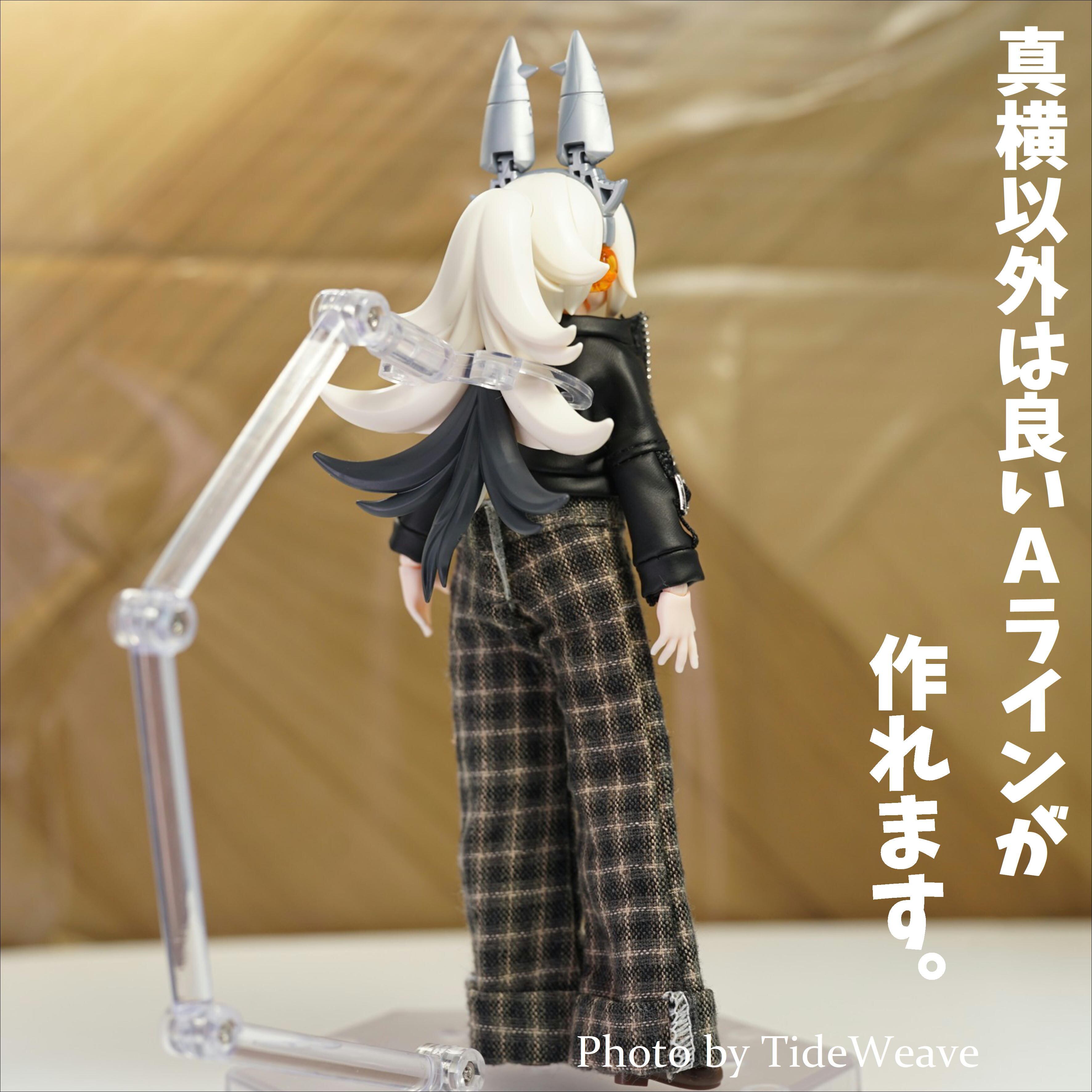 ヒップが大き目なフィギュアですと履かせることができないか、イメージと違うシルエットになってしまいますので予めご了承ください。